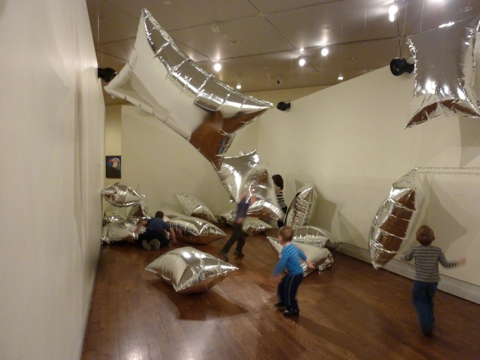 The boys wanted to explore, so we headed downstairs and found a soup can. If you are thinking, "Must be Andy Warhol," then you are right. It was titled "Flat Art" and included works by Warhol and another artist.