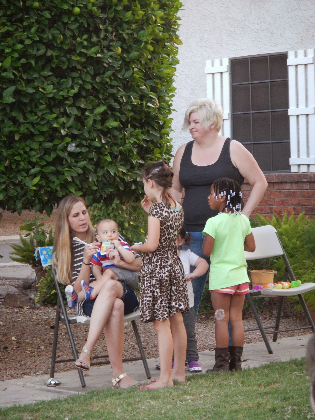 This year we enjoyed another Arizona Easter. Sometimes I feel that we need to hold on to this home and its lovely outdoors just for family Easter celebrations. The weather warm, the grass green, the trees with leaves, blooming things, and that makes it just about perfect. The family is growing (yeah!) and we no longer all fit around the long dining table with its four extenders.