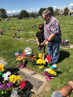 Our next stop was at the Larkin Sunset Cemetery in Sandy. My husband's sister and her family happened to already be there. Great timing on both our parts. Ceci had the privilege of meeting a second cousin.